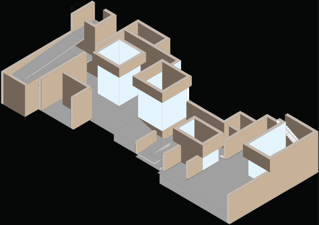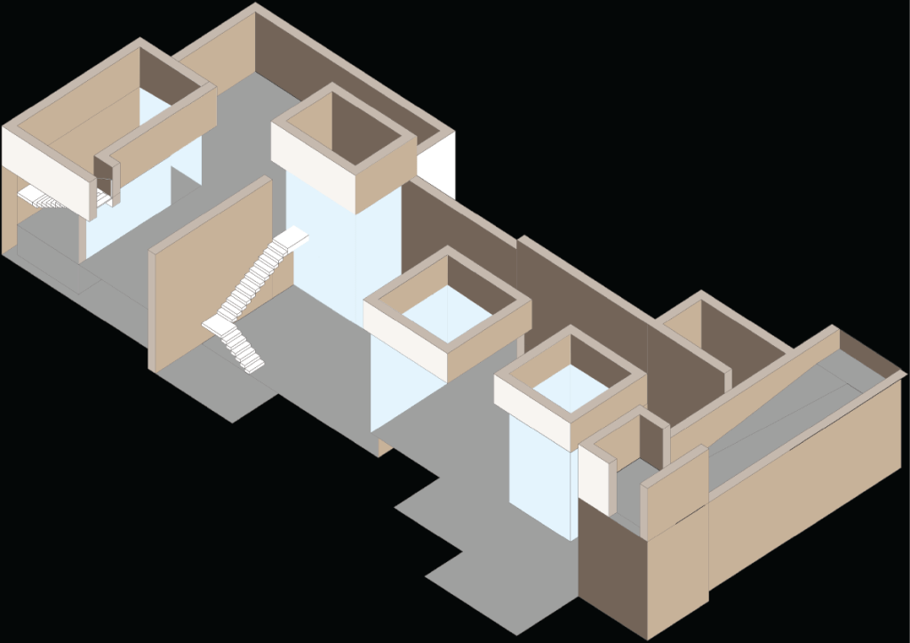 I changed my choice of material from clay to rammed earth after much research and feedback from my tutor. utilising the strength that rammed earth allows, I pushed the design underground and created a quiet gallery space that focused on the environmental control that rammed earth allows.