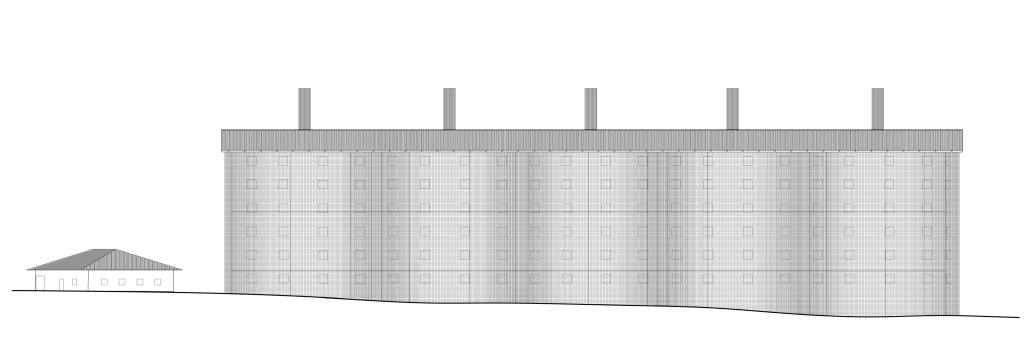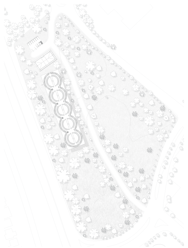 Through the connection of 5 silos, a seamless circulation is presented with the data racks spread across 6 levels with a total of 2,490. With ample data storage available and modular design implemented it enables for multi-company usage across all levels. A small services building breaks the repetition of the cyclic design deliberately as we wanted something that would fade into the background. The building is equipped with a steel frame for an open internal layout continuing the modular and multi-company approach. The building would house, security services, staff bathrooms, offices, storage, loading dock, mechanical rooms, general network infrastructure and backup generators.