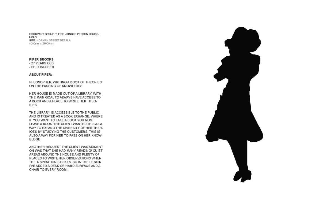 Once the layout of the block was finalised we were able to choose a specific occupant from our original 3 designs and then develop it further over the semester. I especially enjoyed this subject and the tutor Walter Brindle, as he allowed us to develop our own research and bring different strategies to the table. The lessons he taught whether it be hand sketching techniques or urban planning strategies will stay with me and have helped me develop my own architectural understanding and passion.
