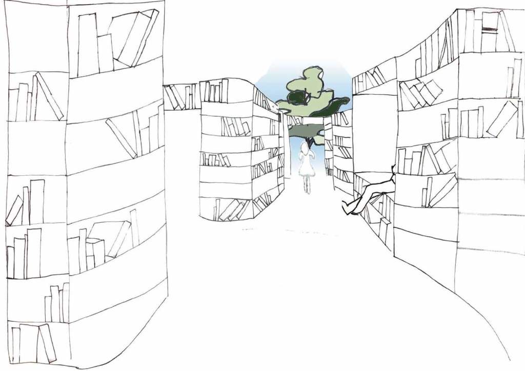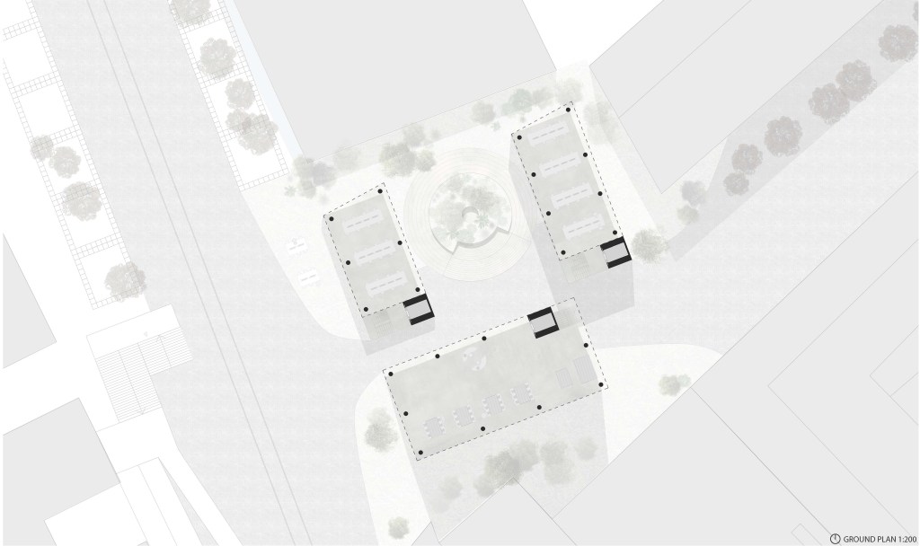 Starting with our studio building we breakdown and reform previously trusted modes of media such as film, theatre and tv shows. Taking this element of violence through the deconstruction of popular media modes, we flip the negative emotional connotations on their head and propose a space for celebration and the amalgamation of previously ignored or intolerable differences. We have utilised the internal and external stairs spaces as amphitheatre halls. Using the carefully crafted nature of the internal space we have designed a town hall like courtyard that plays host to many of our celebratory events. To connect these spaces together, we utilised the movable mesh panel system to open the ground and 1st floor levels to the internal space to allow for bigger or more formal showcases and to also connect our buildings with their internal courtyard space. We really wanted to break that boundary between inside and outside by using our moveable mesh panels which bring in an element of temporality and transparency, really not drawing that line between inside and outside.